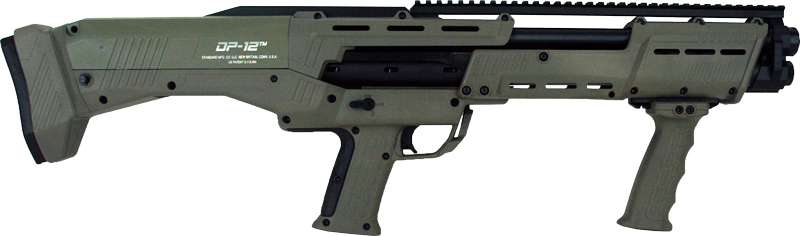 The spreader choke tubes are designed to shoot a devastating pattern at 25 yards. The choke tubes have Tru-Choke thread patterns. Some pictures show door breachers, these are sold separately. The DP-12 provides accessory rails and slots that allow you to customize it with your own accessories. Ergonomically designed to balance the weight of a loaded gun for quick and efficient handling with minimal recoil.
