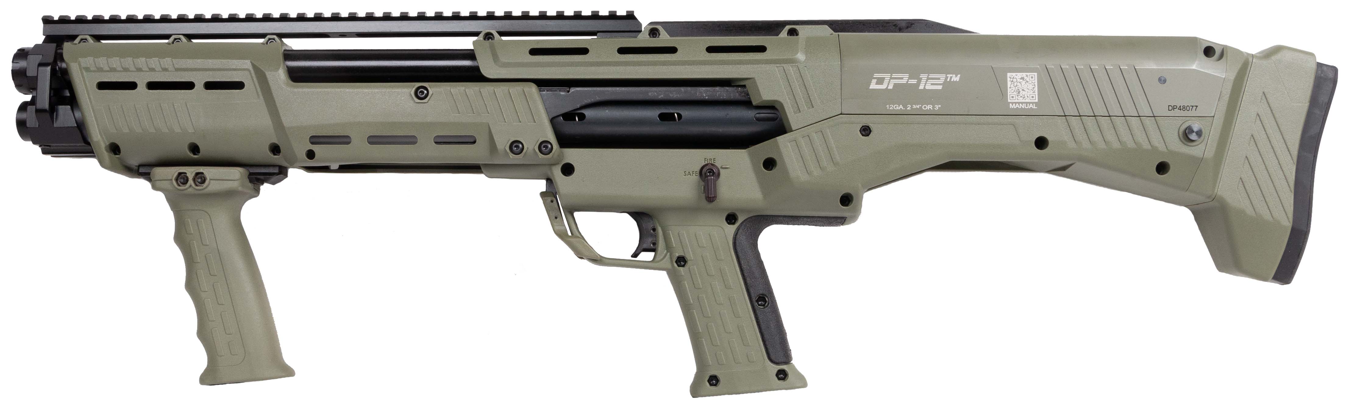 The spreader choke tubes are designed to shoot a devastating pattern at 25 yards. The choke tubes have Tru-Choke thread patterns. Some pictures show door breachers, these are sold separately. The DP-12 provides accessory rails and slots that allow you to customize it with your own accessories. Ergonomically designed to balance the weight of a loaded gun for quick and efficient handling with minimal recoil.