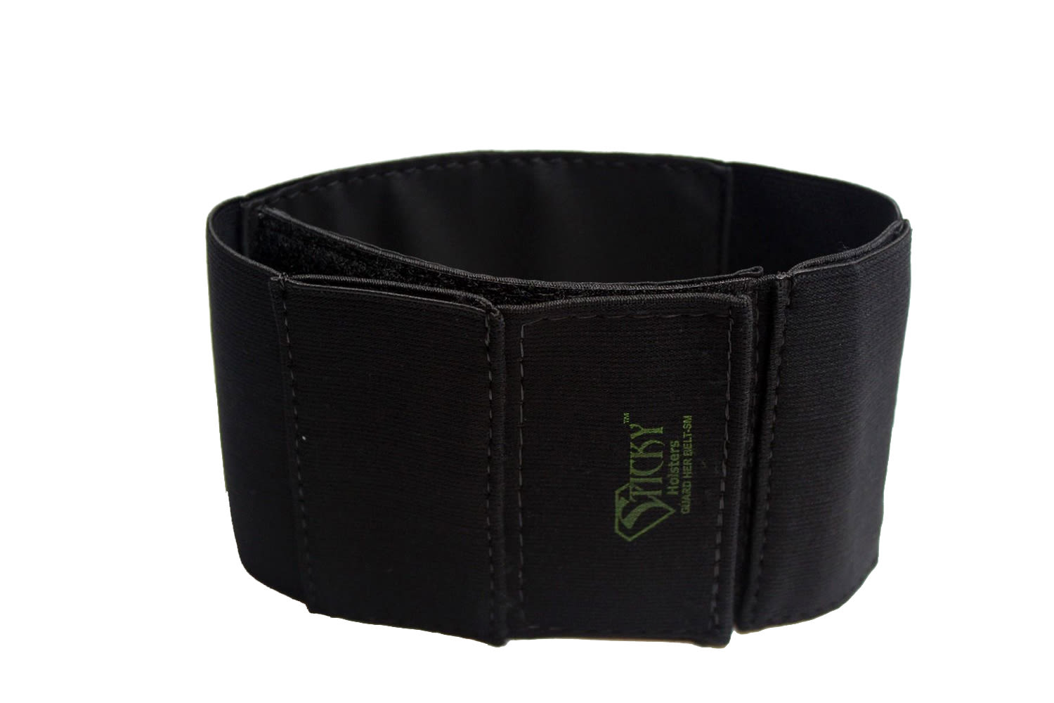 Small: 15”-26” Overall length is 20” The Sticky Guard-Her-Belt is an improved design over other garter style holsters. Our modular designed Guard-Her-Belt works in conjunction with a Sticky Holster providing versatility and stability. We used an extremely comfortable soft plush, industrial strength elastic. The plush is on both sides to eliminate any chaffing or discomfort. The ''STICKY'' patches on the inside remove the need for any additional clips or straps to hold it in place. The Guard-Her-Belt also includes two accessory pouches for an additional magazine or knife. Small: 15”-26” Overall length is 20”