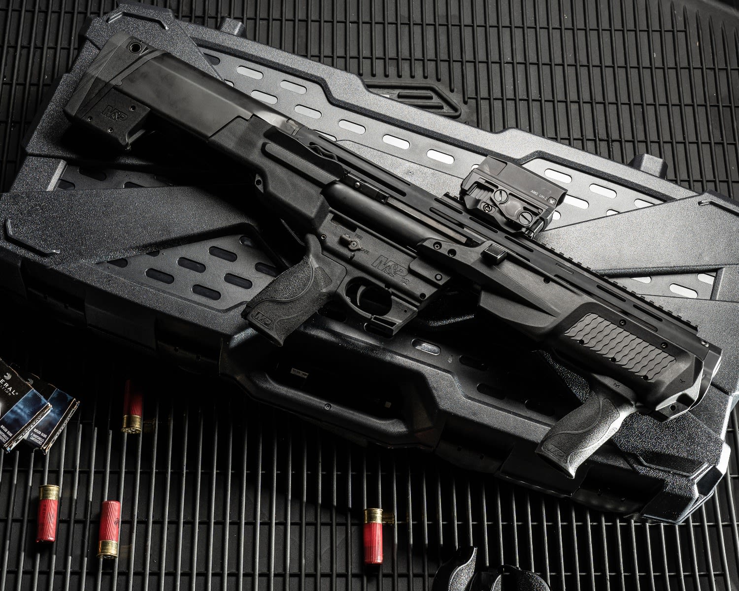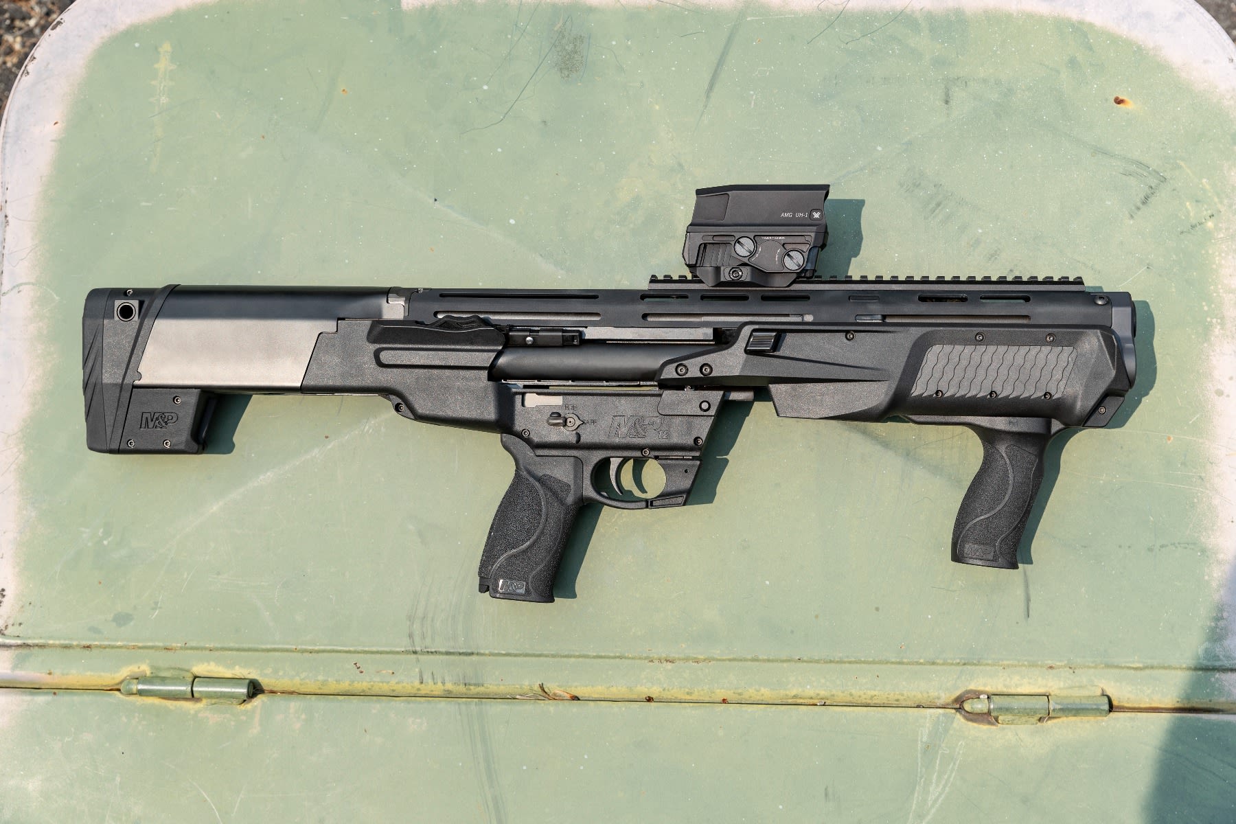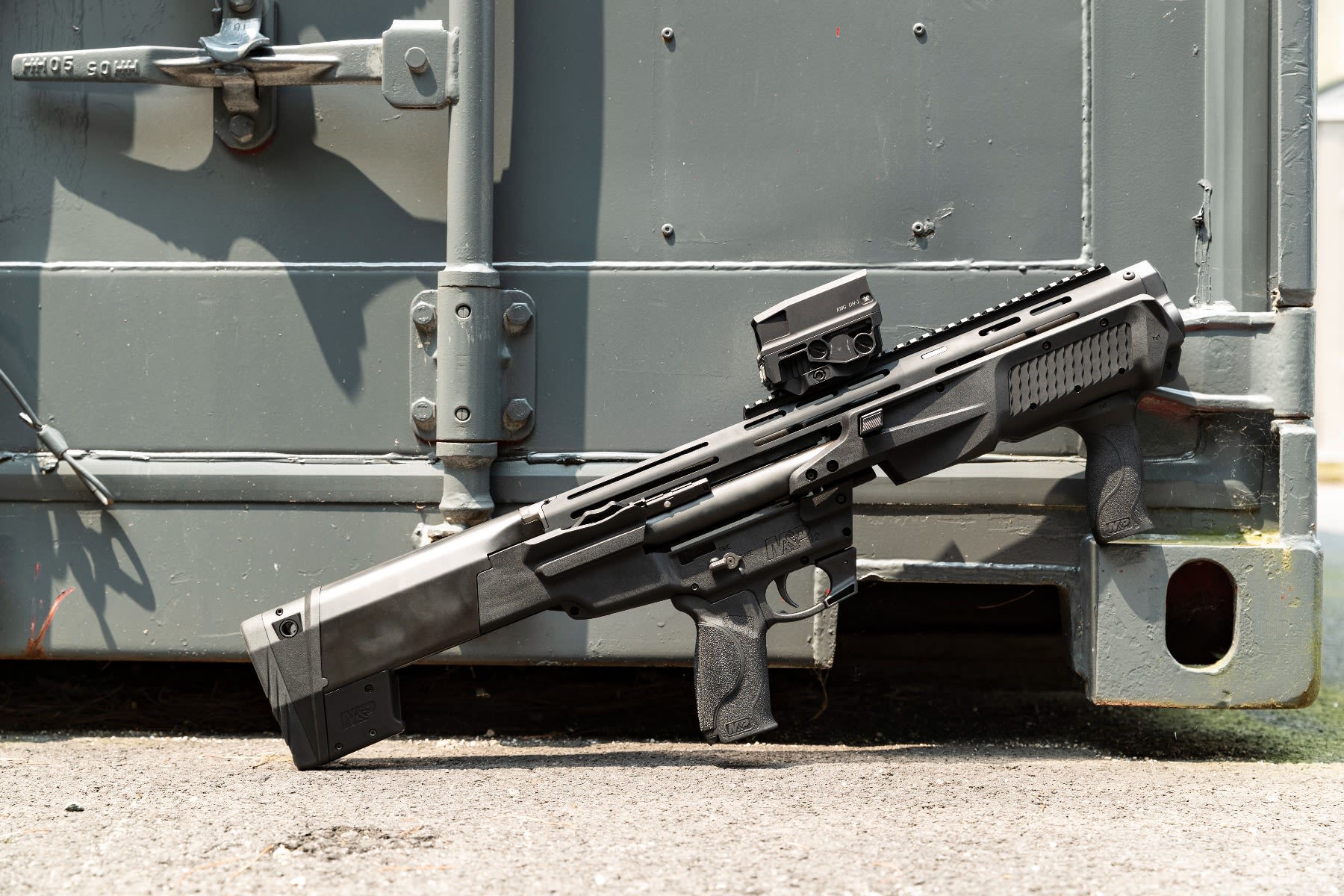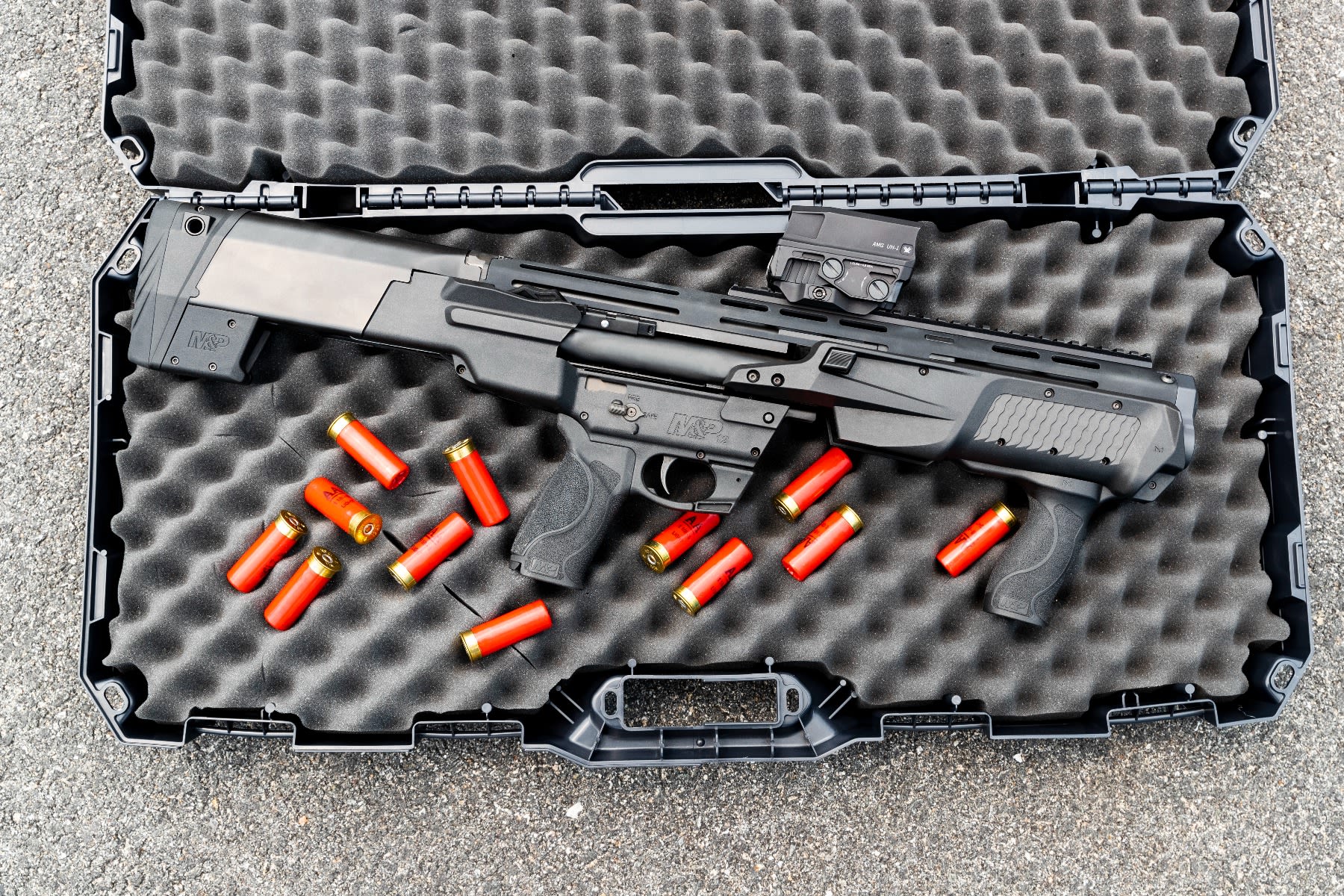 Smith & Wesson introduces The M&P®12; a new, bullpup-style pump action shotgun. Designed for home protection, the new M&P12 shotgun is packed with features in a compact, maneuverable package. The M&P12 is chambered in 12 gauge and is able to accept a combination of standard 2 ¾”, 3” magnum, and mini-shell loads, offering the user a variety of load options to best suit their needs. The M&P12 also features an M&P grip, complete ambidextrous fire control, cycling ability, and magazine selection, picatinny-style rail, and more.