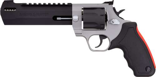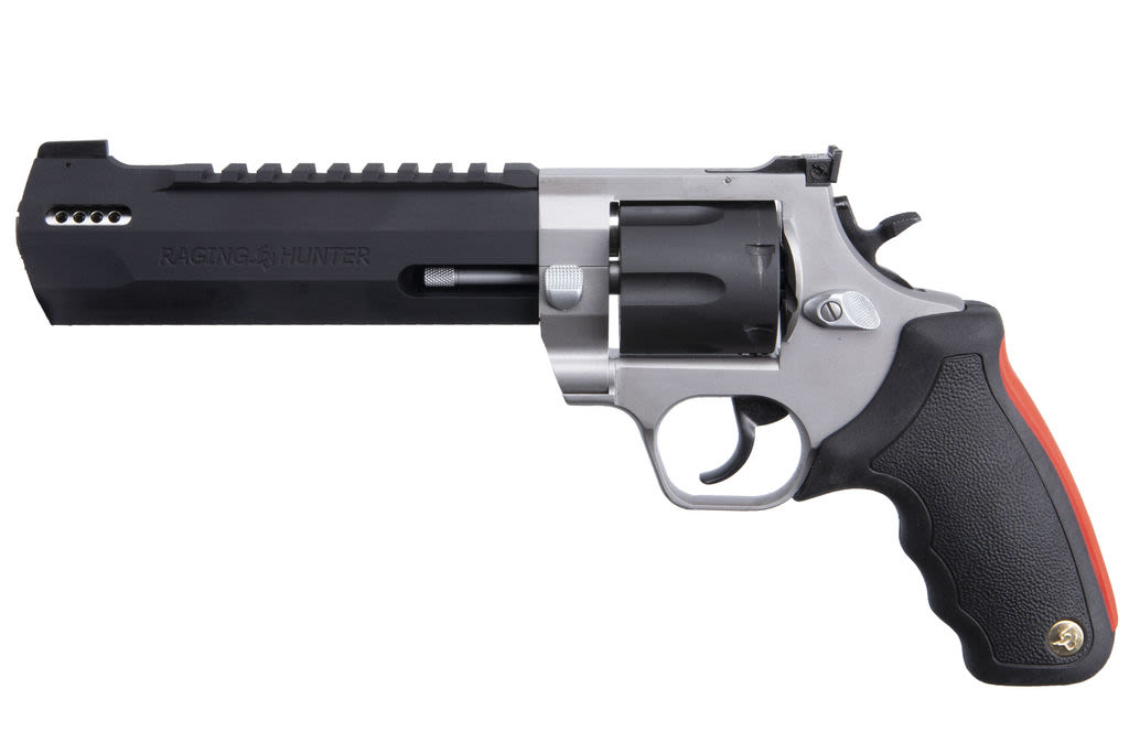 Winner of the 2019 American Hunter Handgun of the Year Golden Bullseye Award, the Taurus Raging Hunter is a next-generation, big-bore revolver that's first in innovation-and built to last. A fun and effective alternative for short- to medium-range hunting scenarios, this 357 Magnum, seven-shot revolver is available in Matte Black or Two Tone finish. Its revolutionary angular barrel design cuts down on overall weight, while its factory tuned porting and gas expansion chamber reduces muzzle lift for quicker target acquisition. Cushioned insert grips ensure a comfortable, controllable shooting experience.
