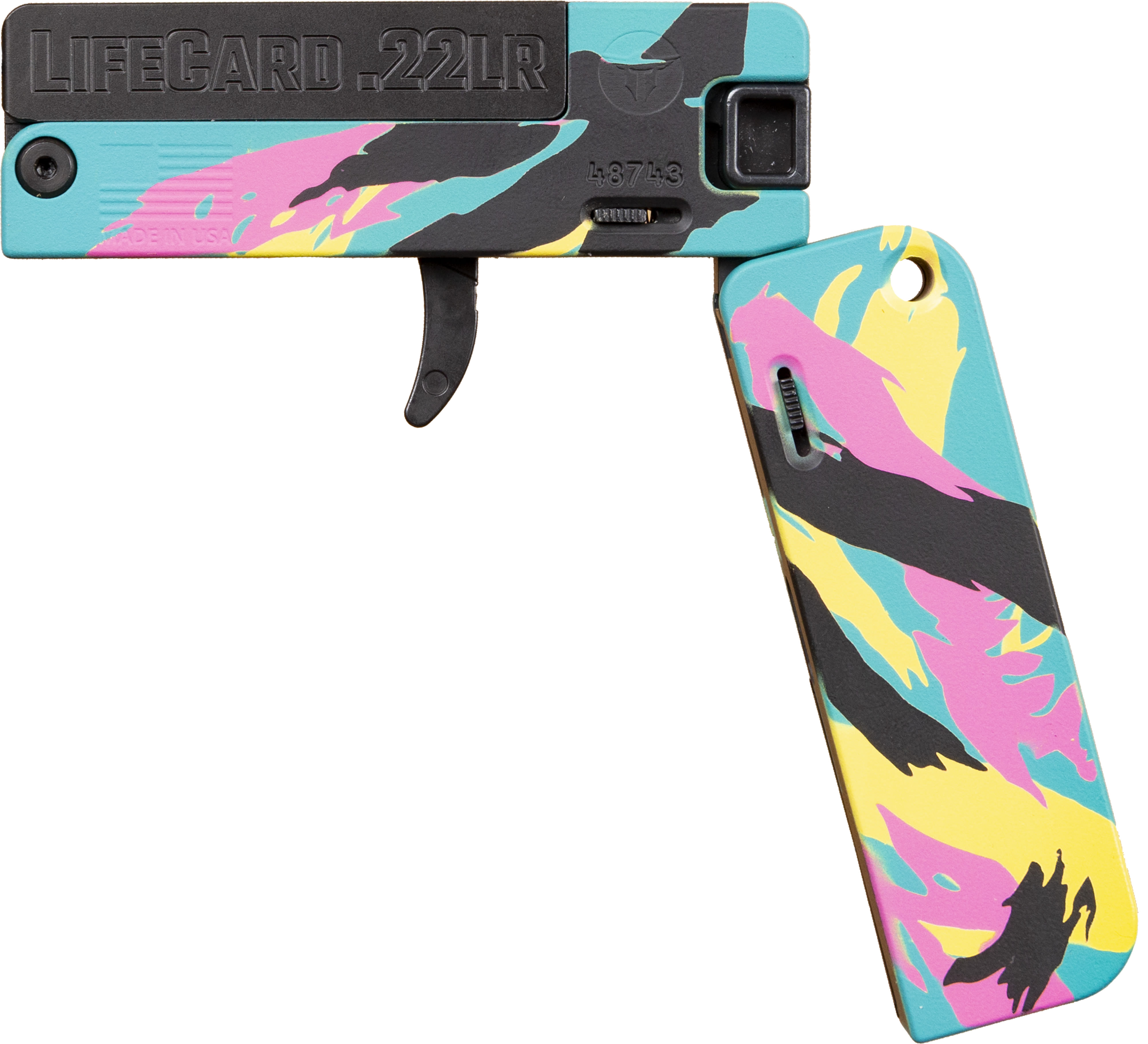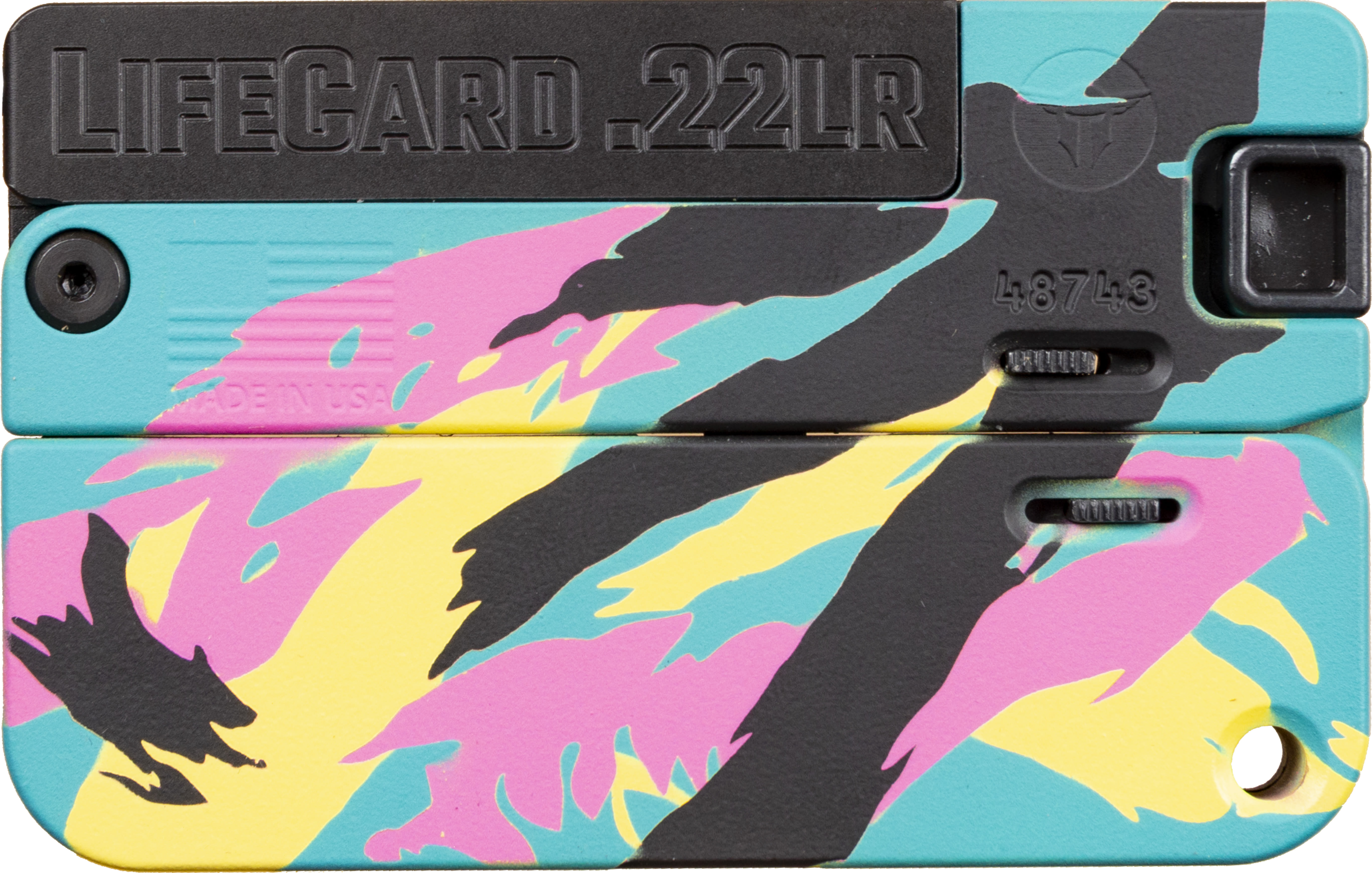 A folding, single-shot .22 caliber pistol that’s no bigger than a stack of credit cards. At .5 inches thin and weighing less than 7 ounces, LifeCard® will be the last gun you’ll leave behind.