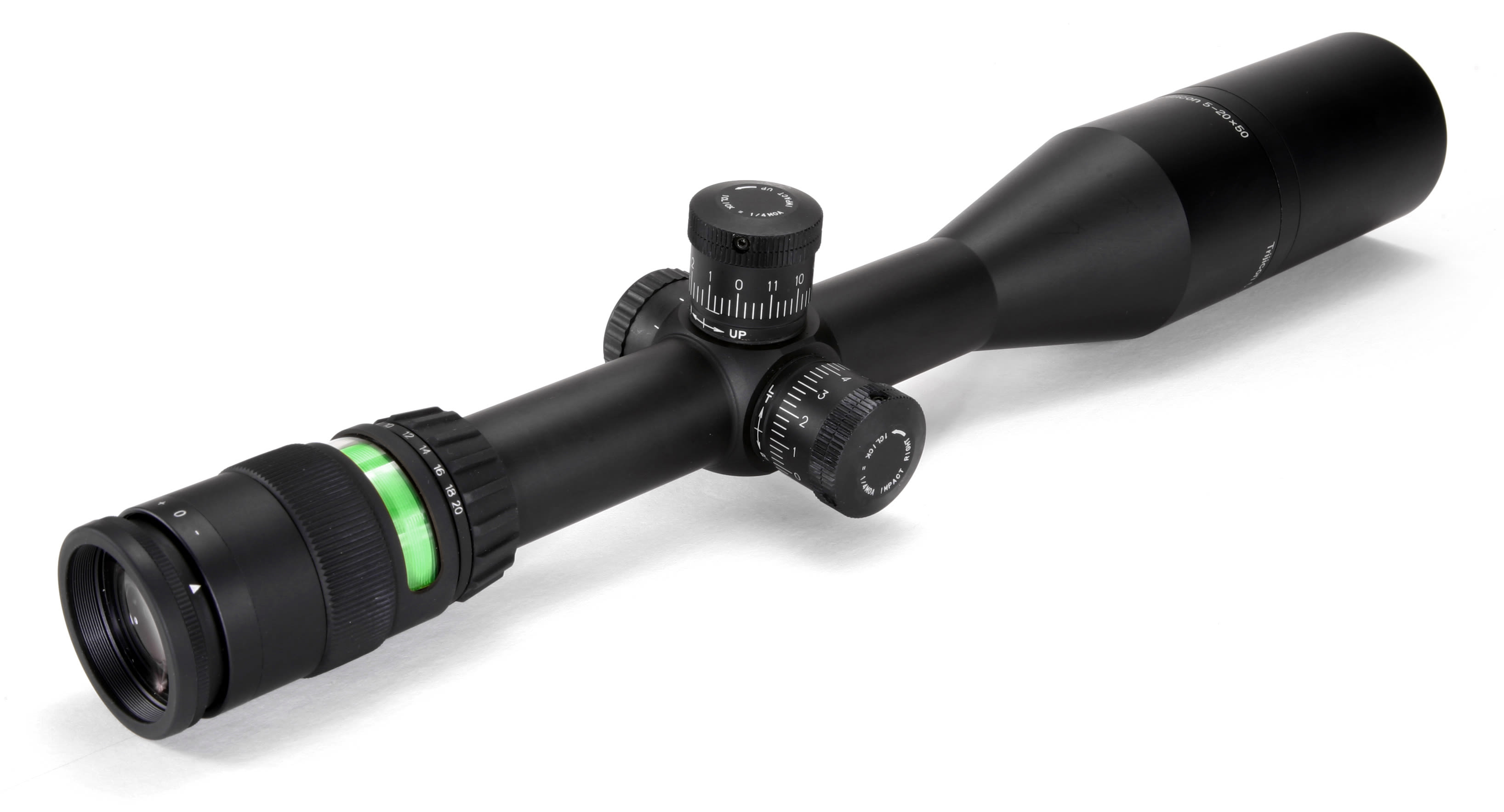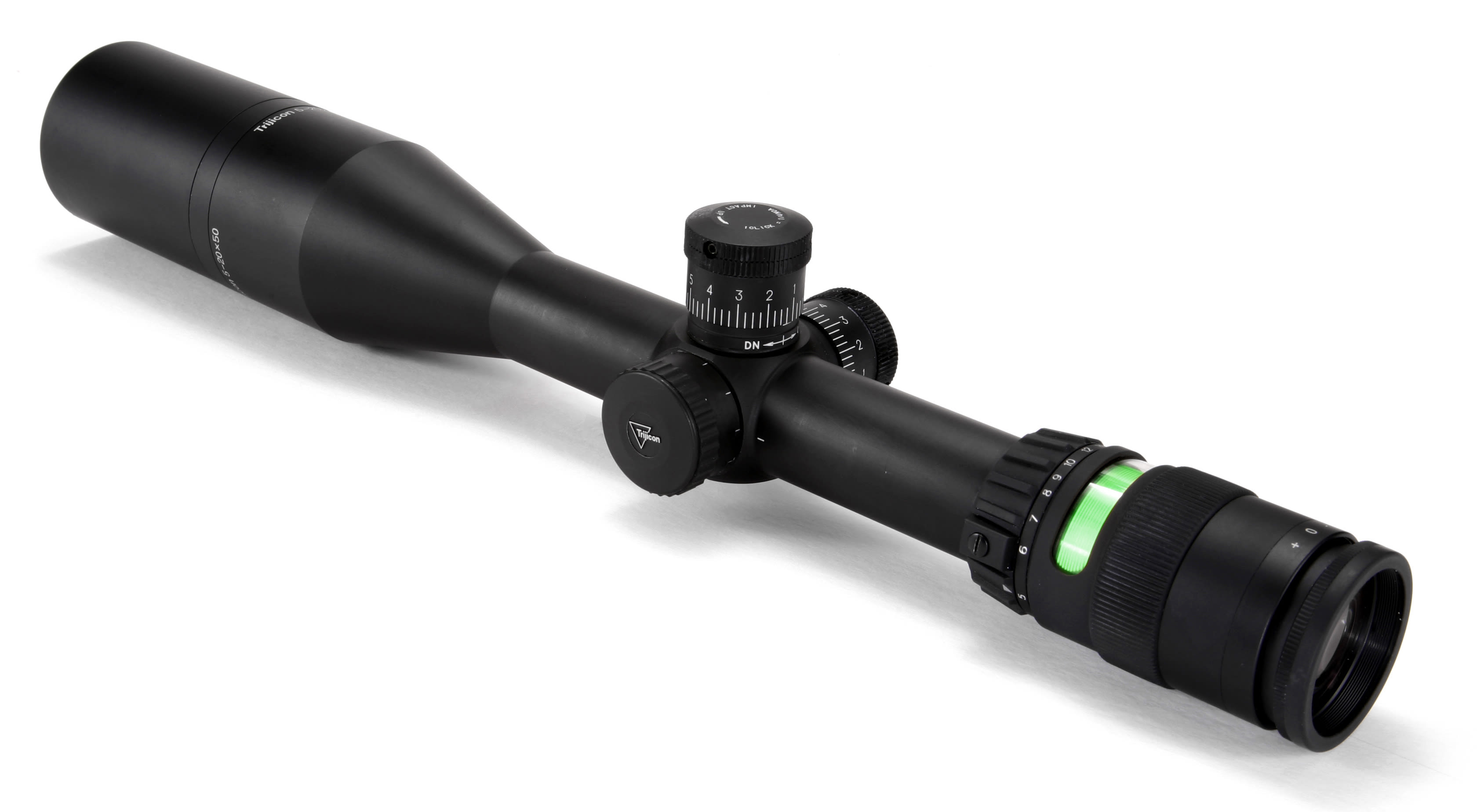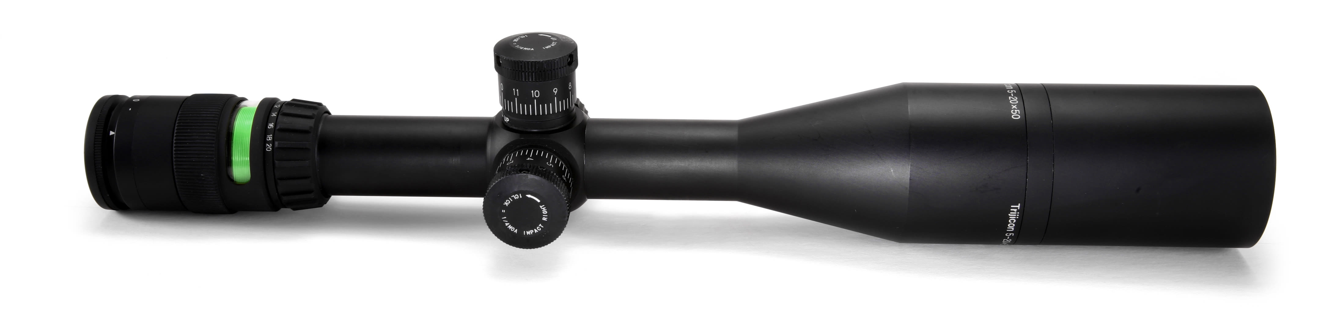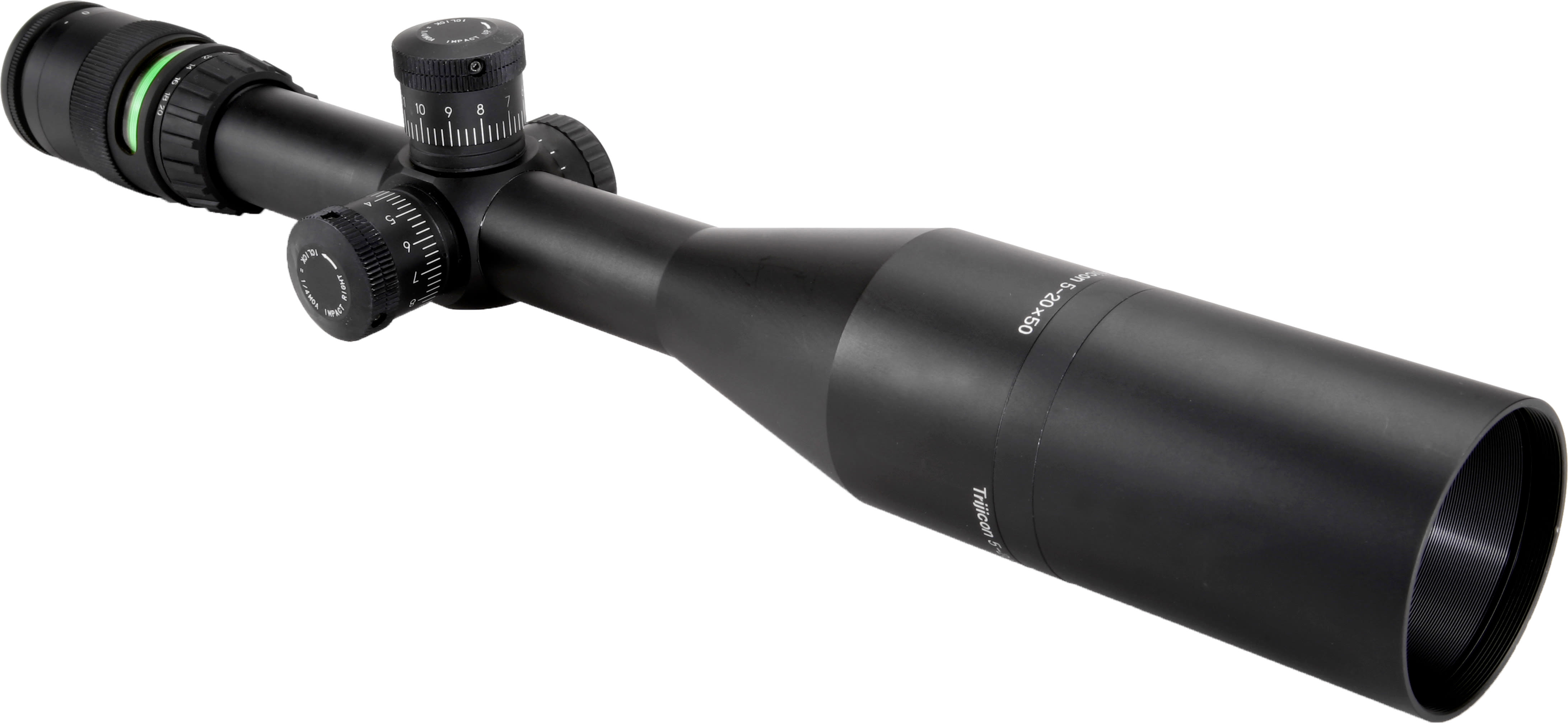 The Trijicon AccuPoint 5-20x50 riflescope gives tactical shooters, varmint hunters and law enforcement snipers the ability to accurately extend their range in any light. Advanced fiber-optics and tritium aiming-point illumination speeds target acquisition and extends available shooting hours. Dual-illumination system automatically adjusts aiming-point brightness to existing lighting conditions. Manual brightness override allows shooters to easily adjust the reticle to suit their preferences. 30mm tube offers a greater range of mounting options. Rugged, aircraft-quality, hard-anodized aluminum body offers all- weather protection. Unmatched long eye relief protects against the recoil of higher caliber rifles. Easy-to-use external turret controls for windage and elevation adjustment. Side parallax adjuster for enhanced accuracy at long range.