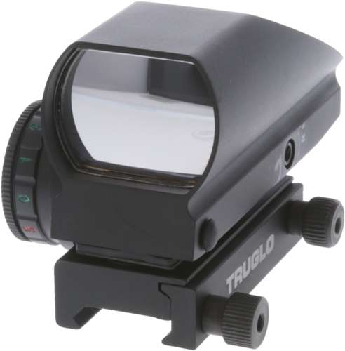 TruGlo's Tru-Brite Dual Open Red/Green Dot Sight has two choices of reticle color for contrast against any target or background. An unlimited eye relief gives a wide field of view for ultra fast target acquisition. The target side of the 34mm lens is coated for anti-reflection and is parallax free from 30 Yards. It has a integrated weaver-style mounting system and (3V-cr2032) batteries are included.