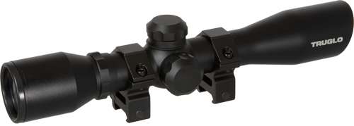 TruGlo's Compact 4x32 scope has fully coated lenses to provide maximum brightness, clarity and contrast. It has a rubber eye guard and a generous 5.5" eye relief. It is compact and lightweight, with a one-piece tube made of aircraft quality aluminum with a durable, scratch resistant, non-reflective matte finish. The Diamond reticle is specially designed for shotgun hunting and is perfect for turkey and deer. This scope is also waterproof, fogproof and nitrogen gas filled. It includes Weaver style rings.