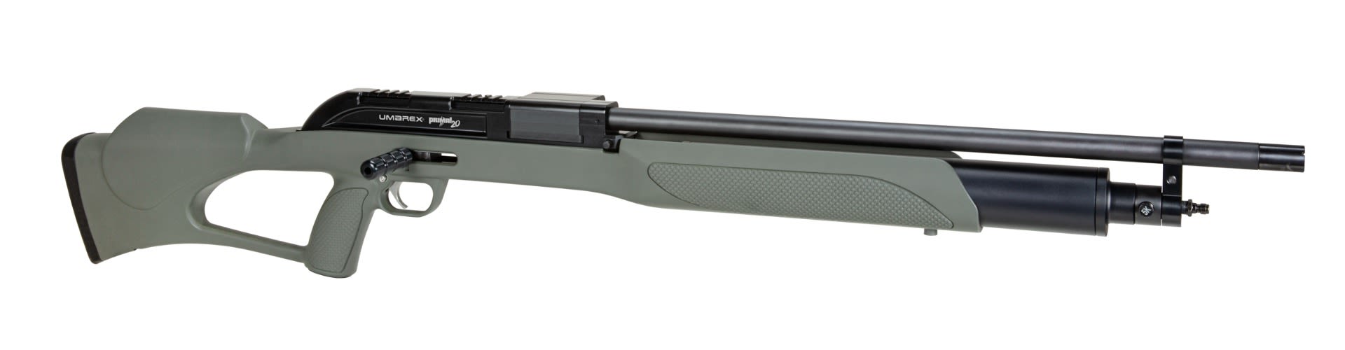 Big Bore Pre-Charged Pneumatics are the hottest trend in airguns and the Umarex Catalog of high performing big bore PCP air rifles has grown to include this new for 2022 offering, the Primal 20. The Primal 20 utilizes a special 20 gauge slug that is fitted with a plastic ''wad'' that acts as the seal within the barrel. Both the slug and the Invector choke installed in the barrel are rifled to insure excellent accuracy downrange. A 395-grain slug leaving the muzzle at 700 FPS will generate 430 ft-lbs of energy. The 2 -shot Primal 20 is equipped with a 24 cubic inch onboard air tank that pressurizes at 4,000 psi. Filling this tank is easy with the end-mounted Foster Quick disconnect fitting. Fully ambidextrous, the Primal 20 is an absolute breeze to set up for shooters of either hand. In an industry first, the Primal 20 is offering shooters a true drop safety in addition to the push-through manual safety.