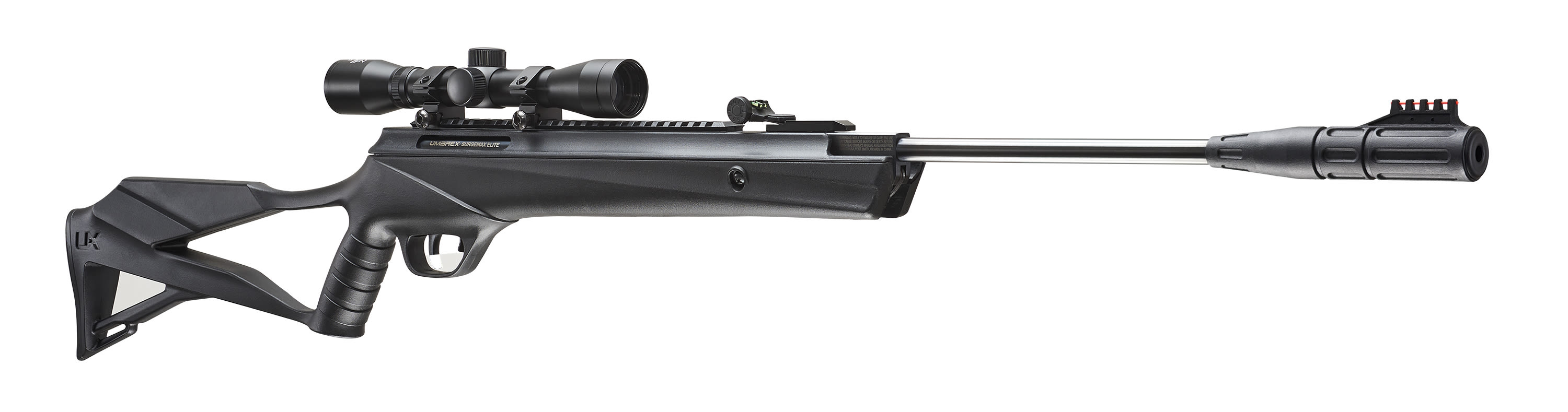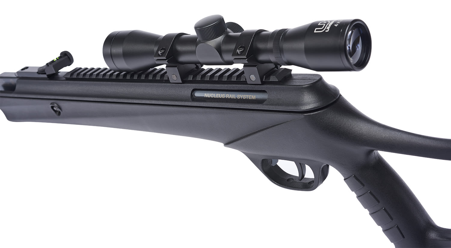 .22 Caliber air rifles are becoming increasingly popular and the Surgemax Elite is now available in this hard-hitting caliber. The Surgemax Elite in .22 launches lead pellets at 800 FPS and lightweight alloy pellets at 1000 FPS. This easy-to-use break barrel design is easy to load and charge as a result of the powerful and smooth T.N.T Gas Piston power unit. Expect the sound report generated by the pellet to be minimized with the SilenceAir sound moderator device installed on the barrel. Optics can be easily mounted on the Surgemax Elite's long Nucleus Rail.