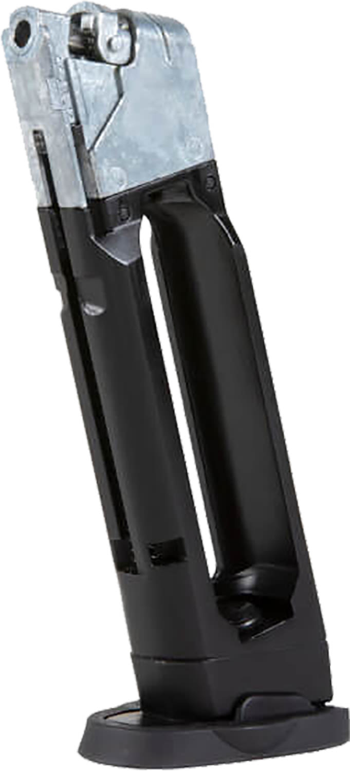 If you have the officially licensed Smith & Wesson M&P9 M2.0 .177 caliber bb pistol, this is the spare magazine you need to keep right on shooting. This drop-free magazine holds a single 12-gram non-threaded CO2 cartridge along with 18 BBs. Loading BBs into the loading port is made much easier by the addition of a follower hold-down tab cut into the BB channel. Pick up a spare magazine or two to aid in magazine change drills or just to keep the fun at the range going for a longer time.