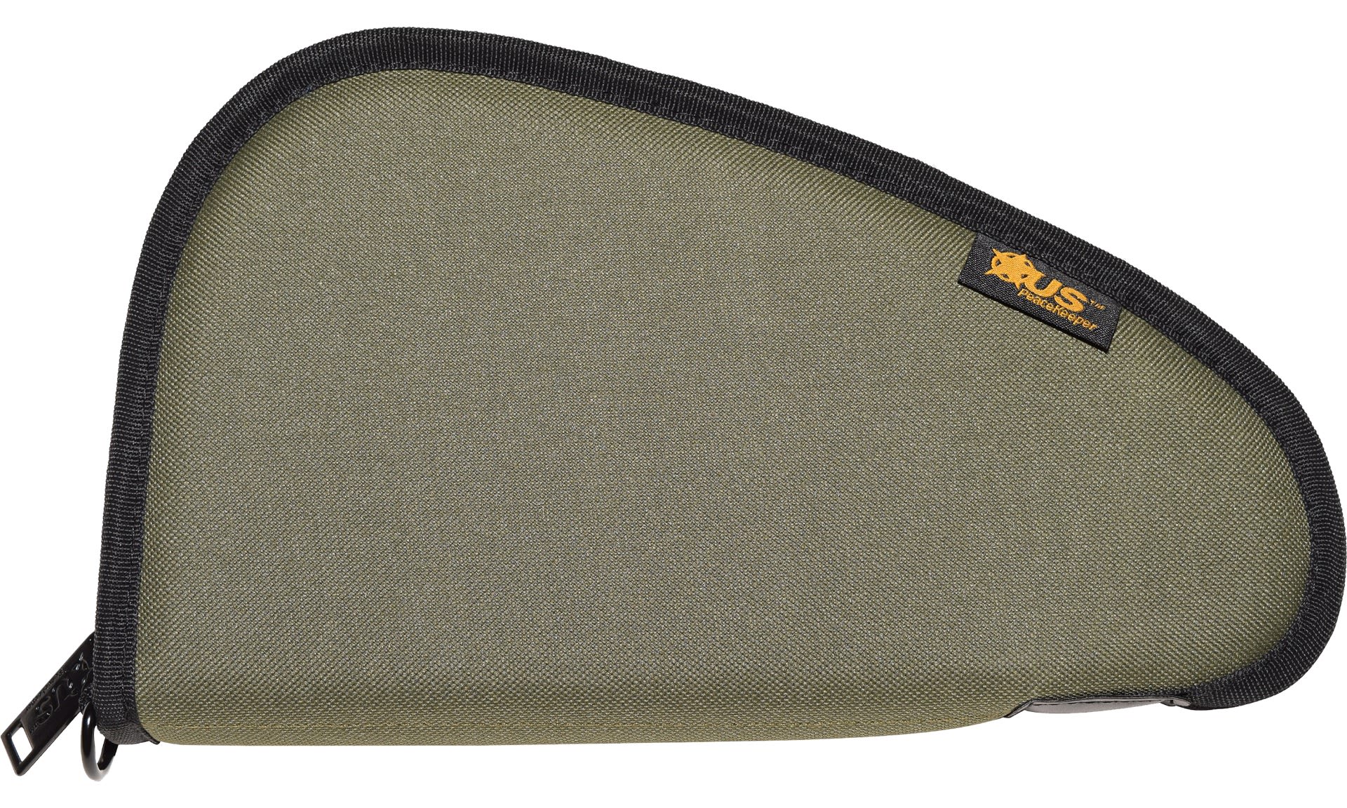 US PeaceKeeper pistol cases are manufactured to the highest quality standards with 1'' padding, double-stitched for durability, and heavy duty #8 zippers. Brushed Tricot liner protects the handgun finish. The D-ring allows this case to be a lockable case. The dimensions of this case are exterior dimensions.
