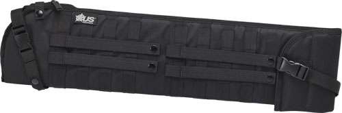 The US PeaceKeeper Shotgun Scabbard is heavily padded and framed for your shotguns protection. It offers tension and straps to hold shotgun in place during movement. A folded, buckled flap of 5" can be fully extended for additional length (from 29.5" to 34.5"). Detachable shoulder strap allows for sling or shoulder-carry. Scabbard will fit Mossberg 590 Shockwave, Remington 870 TAC-14, pistol grip Airsoft Shotgun, and multiple other shotguns with pistol grip or overall length less than 34".
