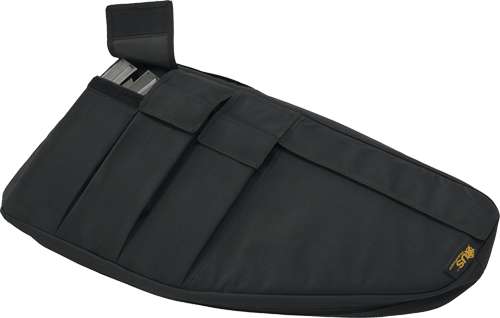 This case is designed with a dual purpose. It is designed to accommodate most popular pistol caliber sub-machine guns with magazines attached or it can accommodate most short-barreled AR-type rifles with an overall length of 25'' or less. Exterior pockets for magazines and other gear. The length of the case is 26 inches and this is an outside dimension.