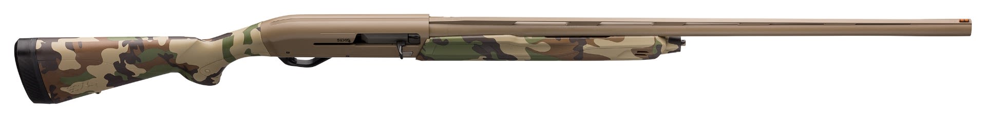 A striking combination. Classic camo and flat dark earth on the Super X4 Hybrid Hunter Woodland make for a unique, yet concealable combination. But it isn't just about fashion, the FDE Cerakote finish offers durability and added protection from the elements. Likewise, the chrome plated bore and chamber will protect from the nastiest elements of the marsh.