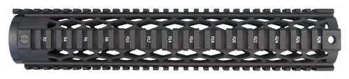 The YHM Diamond Series forearms feature diamond shaped heat vents, an extended top rail for gap-free installation, "T" marked rails to mark accessory locations, accept YHM end caps, and utilize YHM anti-rotation screws for secure installation. The forearms and barrel nuts are made of 6061-T6 aluminum and hardcoated to military specifications. The jam nut and anti-rotation screws are steel and plated a matte black finish to match. The assembly includes: one jam nut, one barrel nut, two anti-rotation screws, and one forearm tube. The overall length is 12.58" and the weight is 15.2 oz.
