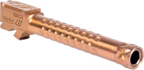 ZEV Technologies Optimized Match Barrels have been redesigned for improved performance and Gen5 compatibility. Enhanced features include a recessed target crown, a new match chamber, and a stylized barrel hood with caliber and model engravings and a loaded chamber indicator.ZEVs proprietary broach cut 1 in 14 left hand twist rifling was developed to create the most accurate Glock aftermarket barrel available, and testing confirms a significant increase in accuracy over factory barrels in all standard bullet weights. Manufactured from 416R stainless steel which is an ideal material for making match grade barrels because the material allows for the precise cutting of chambers and rifling which results in a more accurate barrel.