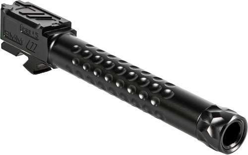 ZEV Technologies Optimized Match Barrels have been redesigned for improved performance and Gen5 compatibility. Enhanced features include a recessed target crown, a new match chamber, and a stylized barrel hood with caliber and model engravings and a loaded chamber indicator.ZEVs proprietary broach cut 1 in 14 left hand twist rifling was developed to create the most accurate Glock aftermarket barrel available, and testing confirms a significant increase in accuracy over factory barrels in all standard bullet weights. Manufactured from 416R stainless steel which is an ideal material for making match grade barrels because the material allows for the precise cutting of chambers and rifling which results in a more accurate barrel.