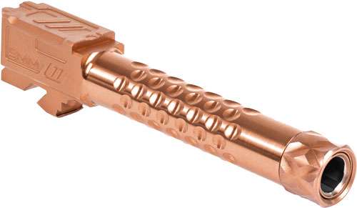 ZEV Technologies Optimized Match Barrels have been redesigned for improved performance compatibility. Enhanced features include a recessed target crown, a new match chamber, and a stylized barrel hood with caliber and model engravings and a loaded chamber indicator. ZEVs proprietary broach cut 1 in 14 left hand twist rifling was developed to create the most accurate Glock aftermarket barrel available, and testing confirms a significant increase in accuracy over factory barrels in all standard bullet weights. Manufactured from 416R stainless steel which is an ideal material for making match grade barrels because the material allows for the precise cutting of chambers and rifling which results in a more accurate barrel.